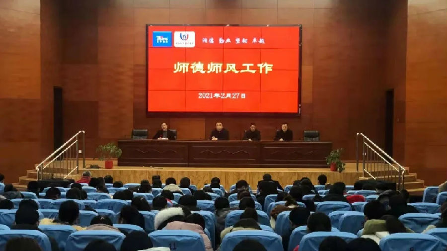 2月27日下午,在学校行政楼二楼报告厅,我校召开2021年春季学期第一次全体教职工会议。校党总支副书记、副校长孙永力主持会议,有关分管领导布置开学相关工作,学校党总支书记、校长郭颖超总结讲话。