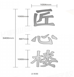 2、字体规格:0.57m*1.054m,金属字厚30mm
