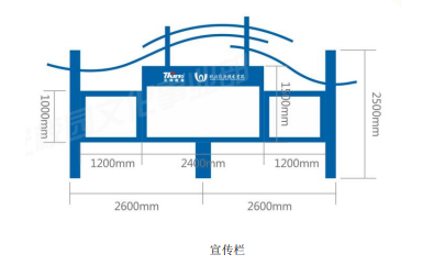 1、宣传栏尺寸:高2.55m,长4.2m,厚0.1m